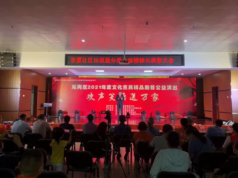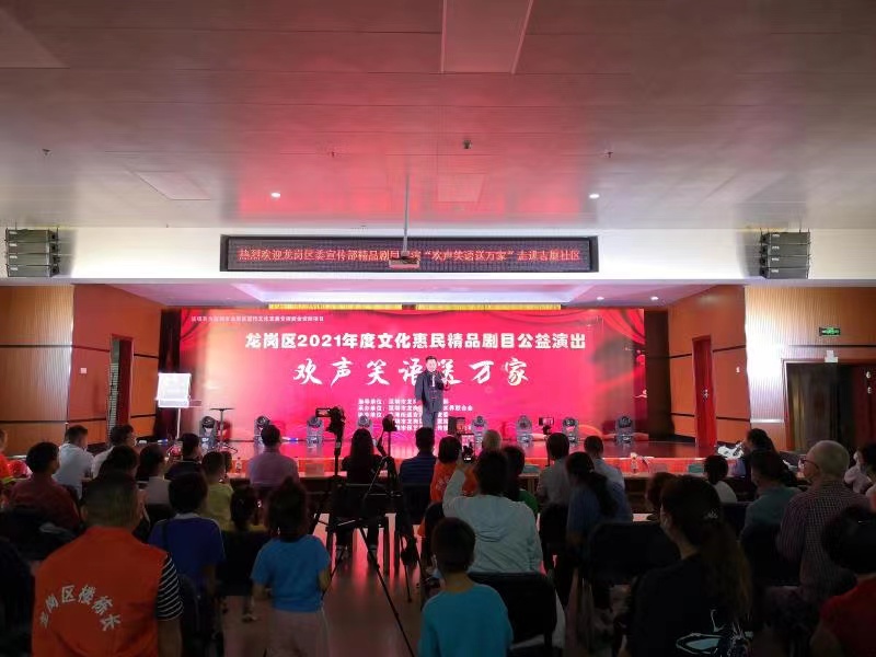 2021年10月15日19時(shí),由中共深圳市龍崗區(qū)委宣傳部指導(dǎo),深圳市龍崗區(qū)文學(xué)藝術(shù)界聯(lián)合會(huì)承辦,南灣街道吉廈社區(qū)黨委、深圳市龍崗區(qū)曲藝家協(xié)會(huì)、深圳市保藝源文化傳播有限公司協(xié)辦的深圳市龍崗區(qū)宣傳文化發(fā)展專項(xiàng)資金資助項(xiàng)目——“歡聲笑語送萬家”龍崗區(qū)2021年度文化惠民精品劇目公益演出活動(dòng)在南灣街道吉廈社區(qū)文化中心拉開帷幕。